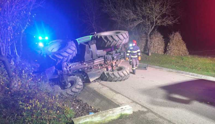Trei bărbați au ajuns la spital după ce tractorul în care se aflau s-a răsturnat într-un șanț, pe un drum