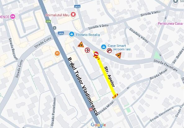 În intervalul 3 – 11 aprilie, între orele 08:00 și 16:00, circulația pe strada Apelor va fi suspendată.