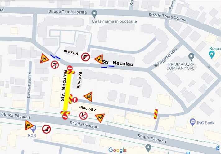 În perioada 04 – 08 iunie , între orele 08:00 – 18:00, va fi închisă circulaţia pe str. Neculau (tronsonul cuprins între intersecţia cu str. Păcurari şi intersecţia cu str. Neculau – bl. 576).