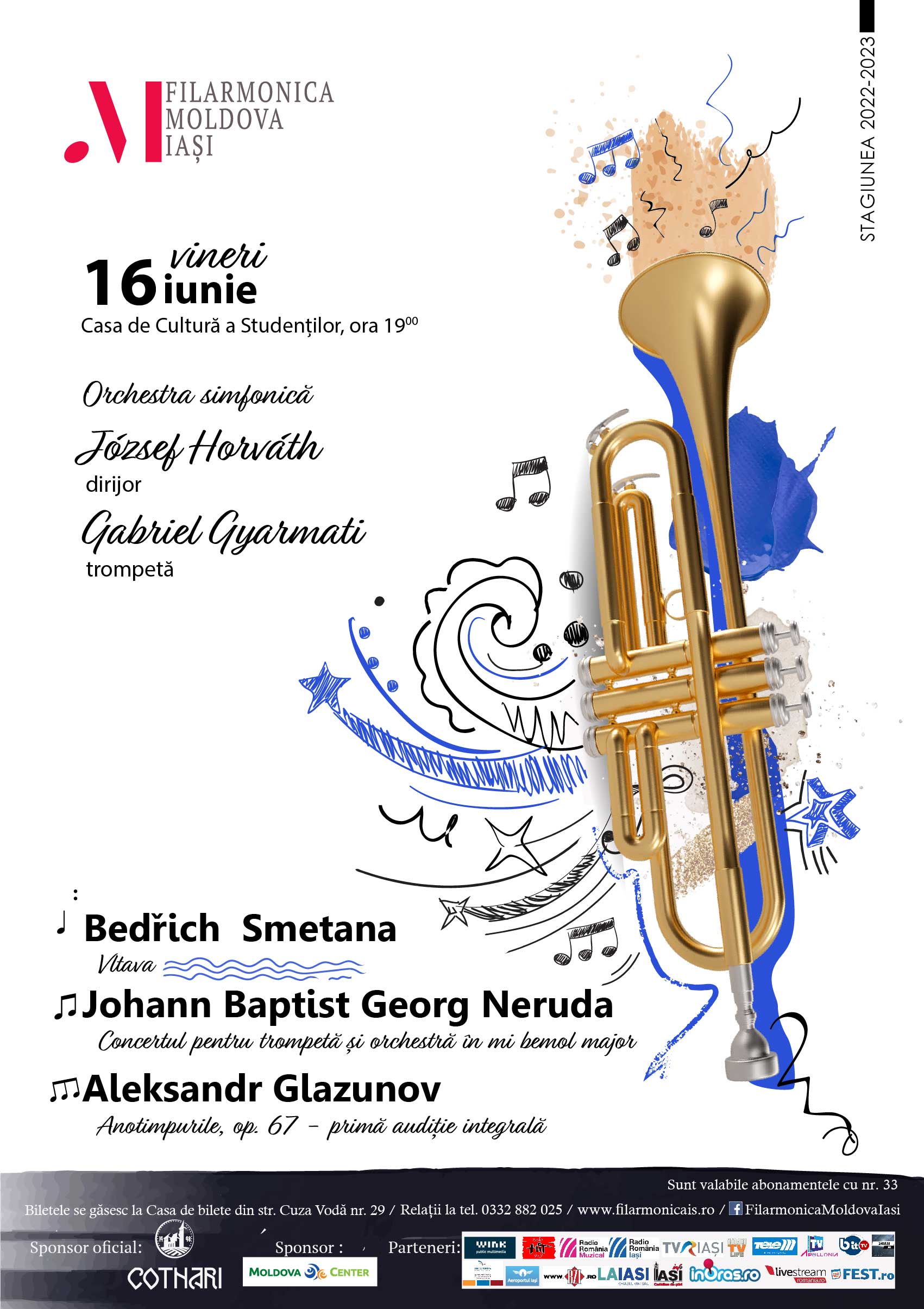 Vineri, 16 iunie 2023, începând cu ora 19:00, orchestra simfonică a Filarmonicii „Moldova” din Iași va susține la Casa de Cultură a Studenților, un concert simfonic sub bagheta dirijorului JÓZSEF HORVÁTH.