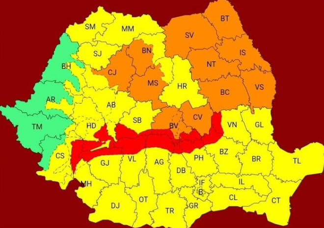 Potrivit ANM, județul Iași se află sub COD PORTOCALIU, cu următoarele fenomene periculoase: intensificări puternice ale vântului, cu rafale de 70–90 km/h, ninsoare viscolită, vizibilitate foarte redusă, local sub 100 de metri si depuneri de zăpadă și troiene, mai ales în zonele deschise.