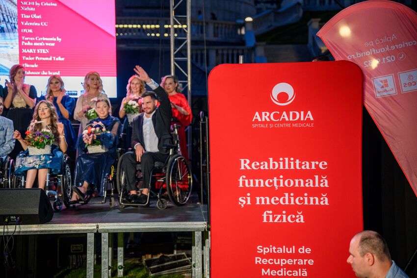 12 modele extraordinare de viață, în fotoliu rulant, au defilat alături de personalități locale. Unul din punctele culminante ale serii a fost momentul în care, Raluca Fiterman, CEO Arcadia – Spitale și Centre Medicale, a defilat pe scenă alături de un pacient al centrului în fotoliu rulant, David Mitran. Ulterior, David s-a întors pe scena evenimentului asistat de un kinetoterapeut, dar, de data aceasta, fără fotoliu, ci într-un exoschelet ultra performant.