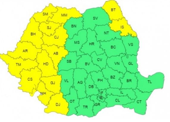 Administraţia Naţională de Meteorologie a transmis, duminică, o avertizare Cod Galben de temperaturi deosebit de ridicate, local caniculă şi disconfort termic ridicat pentru Banat, Crişana, Maramureş, vestul Transilvaniei, jumătatea de vest a Olteniei şi nordestul Moldovei.