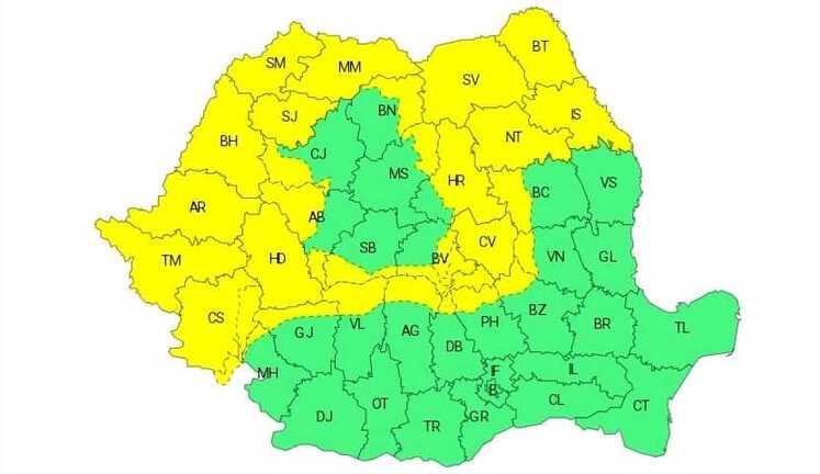 În intervalul menționat, în zona de munte, în Banat, Crișana, Maramureș și jumătatea de nord a Moldovei vor fi perioade cu instabilitate atmosferică.