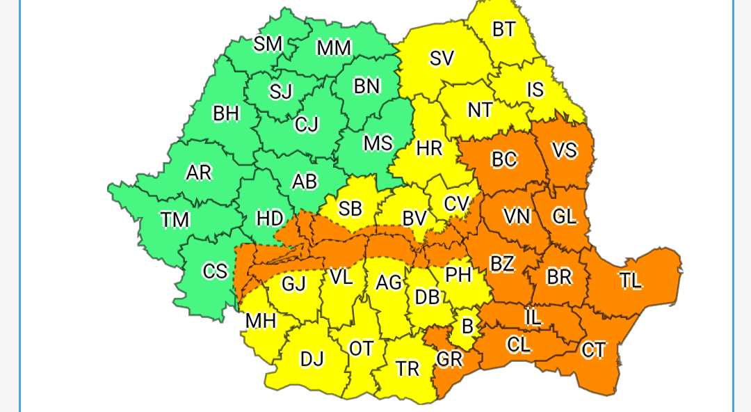 Vântul va avea intensificări, cu rafale în general de 60…75 km/h, vor fi intervale cu viscol și vizibilitate scăzută.