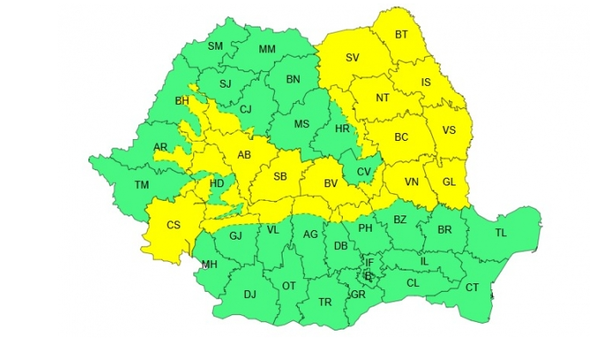 Specialiștii în meteorologie au emis un cod galben de vânt, valabil între 15 martie, ora 12 și 16 martie, ora 02, în sudul Banatului, sud-vestul și sudul Transilvaniei, precum și în Moldova și zonele montane, unde rafalele vor atinge viteze de 50-60 km/h. În zonele montane, la altitudini de peste 1700 metri, vântul va avea intensificări de 80-100 km/h.