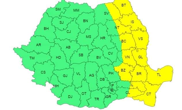 Vântul va prezenta intensificări cu viteze în general între 40-50 km/h, dar, la rafală, se vor înregistra și 55 km/h.
