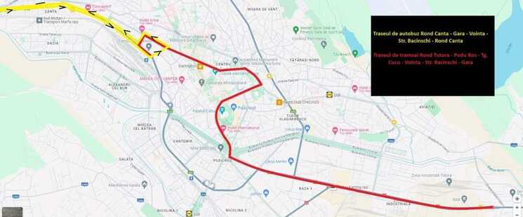 – Tramvaiele care operează pe traseul 7 vor circula până la Gara, urmând itinerariul modificat: Rond Tutora – Podu Ros – Tg. Cucu – Vointa – Str. Bacinschi – Gara.