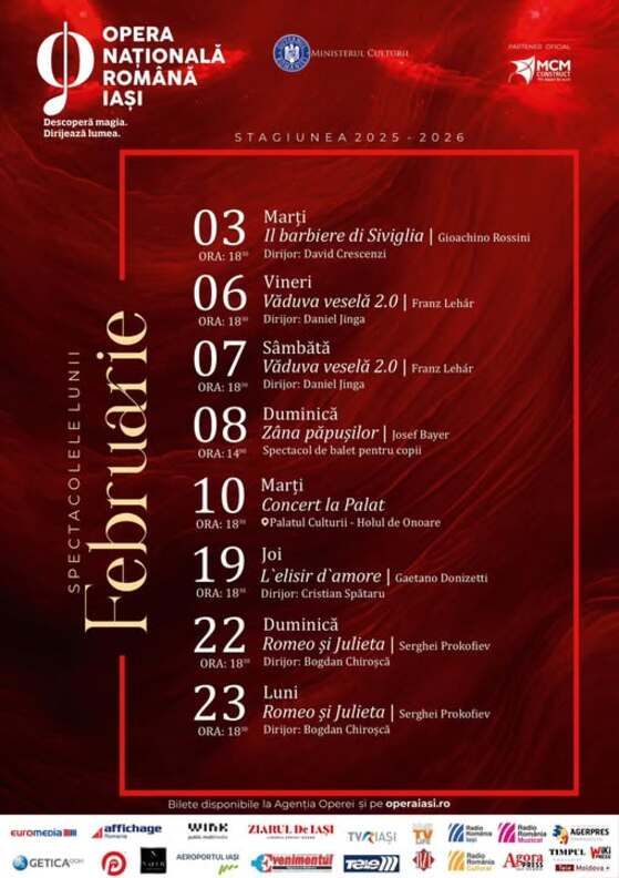 Reprezentațiile lunii februarie sunt deja disponibile publicului. Biletele pot fi cumpărate de la Agenția Operei, situată în foaierul instituției, dar și online, pe platforma oficială operaiasi.ro, începând de astăzi, ora 12:00.