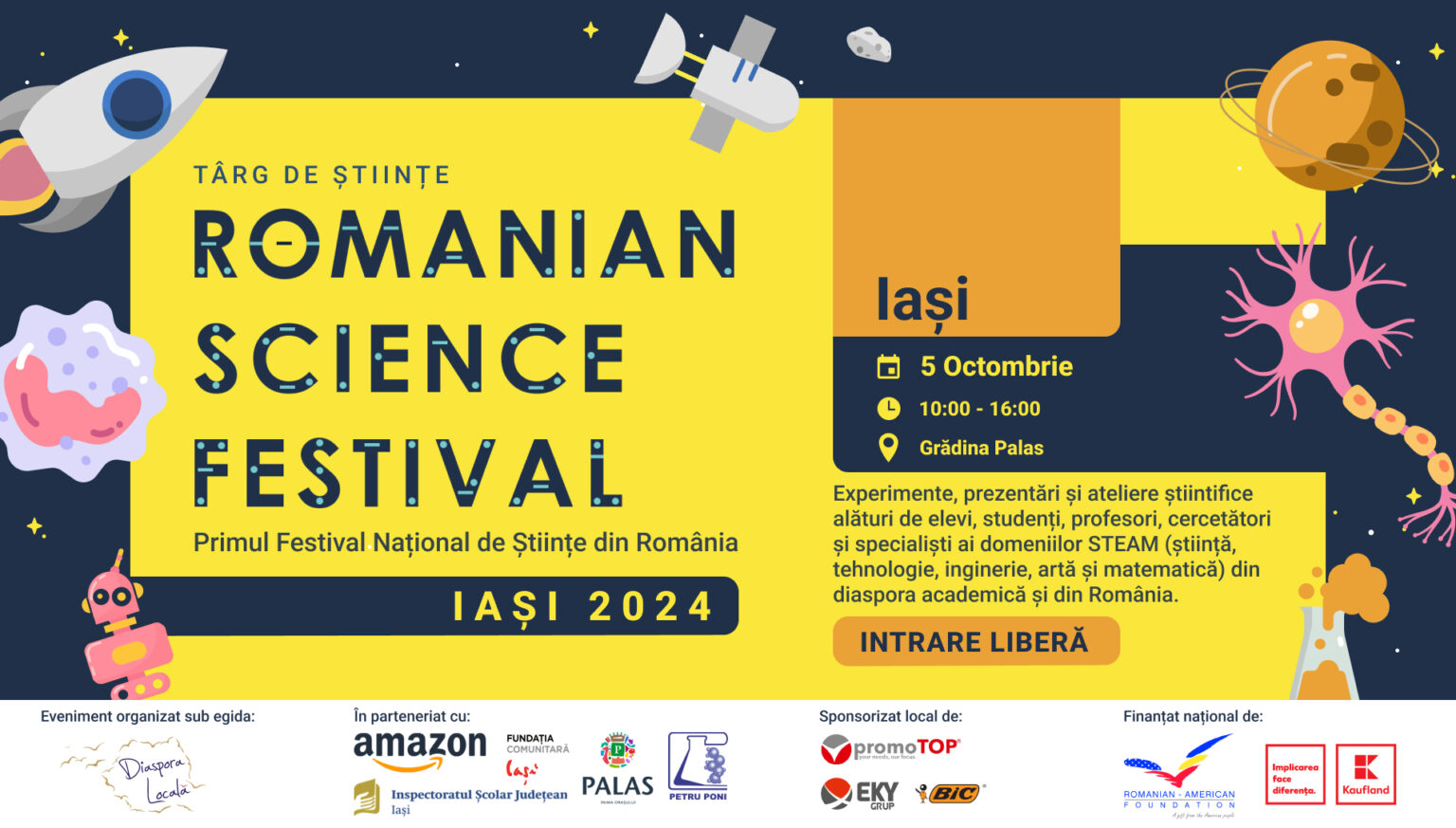 Târgul de Științe organizat de Romanian Science Festival te invită sâmbătă, între orele 10:00 și 16:00, în grădina Palas, să observi 200 de experimente interactive, într-o atmosferă plină de energie și curiozitate, alături de o echipă impresionantă de peste 500 de elevi, studenți și specialiști. Domeniile prezentate vor include robotică, inteligență artificială, medicină, chimie, fizică, biologie, astronomie, neuroștiință, inginerie și sustenabilitate, oferind o oportunitate unică de a interacționa cu știința într-un mod captivant și educativ.