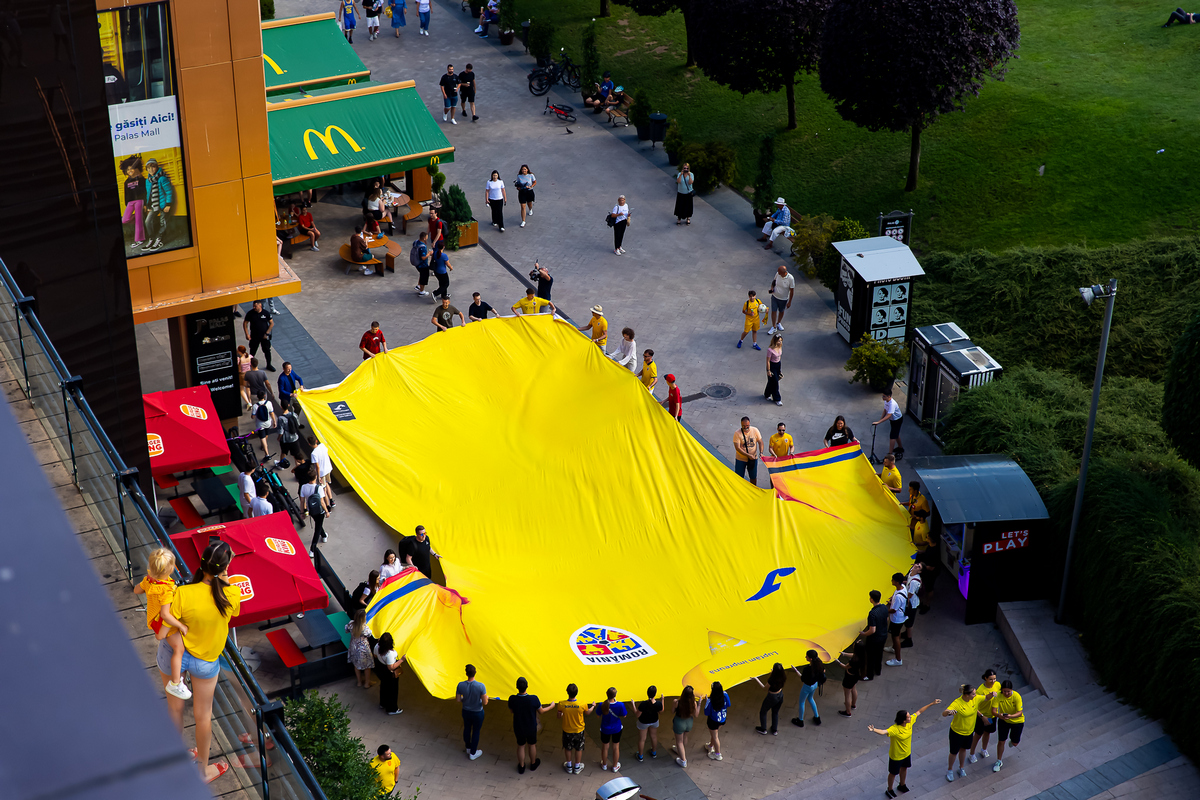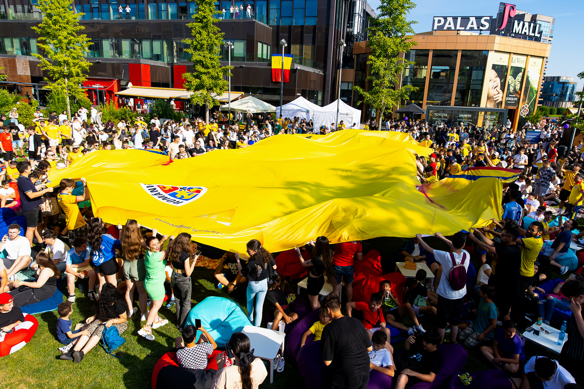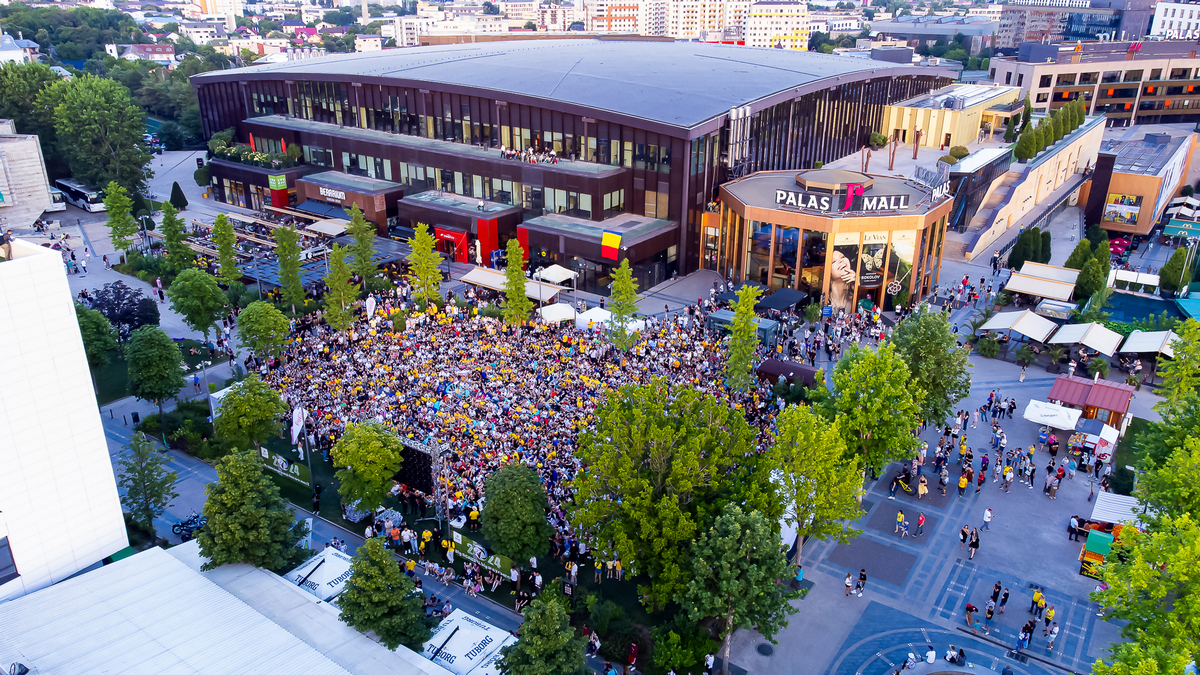 Esplanada Palas a vibrat de emoție miercuri, când Echipa națională a României s-a calificat în optimile Campionatului European de Fotbal 2024. Înainte de începerea meciului, Palas a pregătit și o surpriză de proporții uriașe pentru suporteri: un tricou gigant, o replică a echipamentului tricolorilor, de 15 metri lungime și 7 metri lățime, a fost „purtat” prin ansamblul multifuncțional de zeci de oameni.