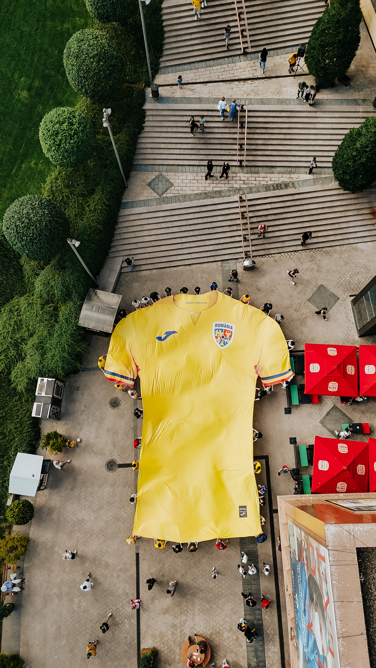 Surpriza Palas pentru fanii Echipei naționale de fotbal: un tricou de 15 metri, „purtat” de ieșeni prin parcul Palas