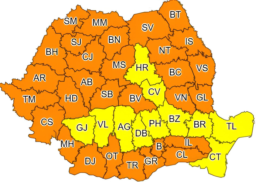 ANM a emis o avertizare Cod portocaliu de caniculă şi disconfort termic accentuat, valabilă pe parcursul zilei de luni, 28 august.