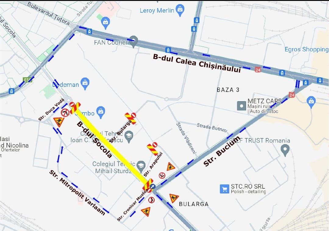 În perioada 26-28 aprilie, între orele 22:00 – 06:00, va fi închisă circulaţia pe bd. Socola – tronsonul cuprins între Rondul din dreptul Magazinului Dedeman şi intersecţia cu str. Cronicar Mustea şi str . Bucium.