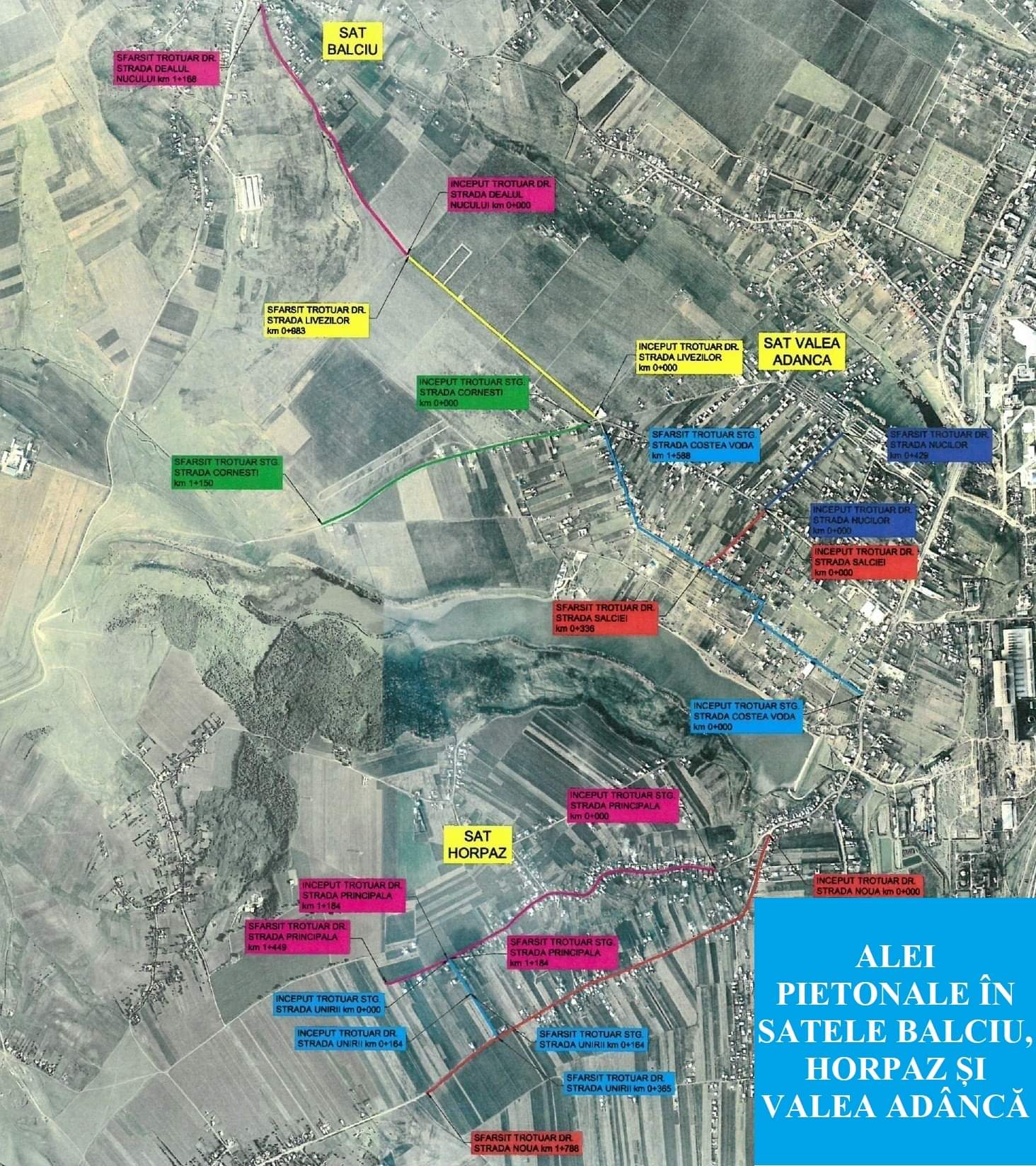 Primăria a finalizat licitația privind realizarea de alei pietonale în satele Balciu, Horpaz și Valea Adâncă. Câștigătoare a fost desemnată Asocierea Mecon (lider) – Conest, valoarea contractului fiind de 5,94 milioane lei. Lucrările urmează a fi efectuate în maximum trei ani, contractul având clauză suspensivă (ordinul de execuție a lucrărilor va fi emis în funcție de resursele bugetare existente).