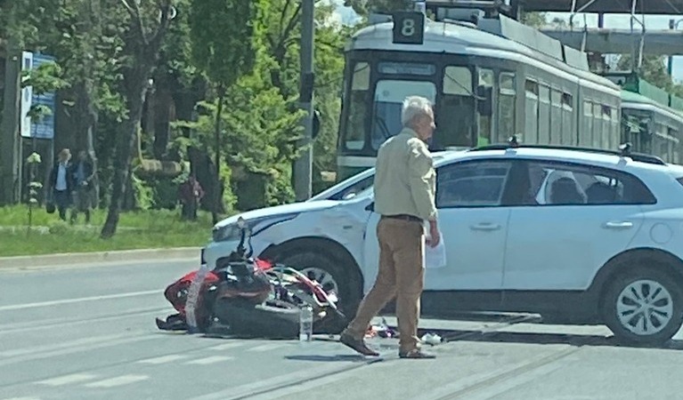 Un motociclist a fost ranit in urma unui accident rutier produs în aceasta după-amiaza în zona magazinului Leroy Merlin din