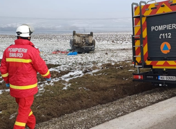 Un apel la Numărul unic de urgență 112 a alertat autoritățile în legătură cu producerea unui accident rutier în comuna