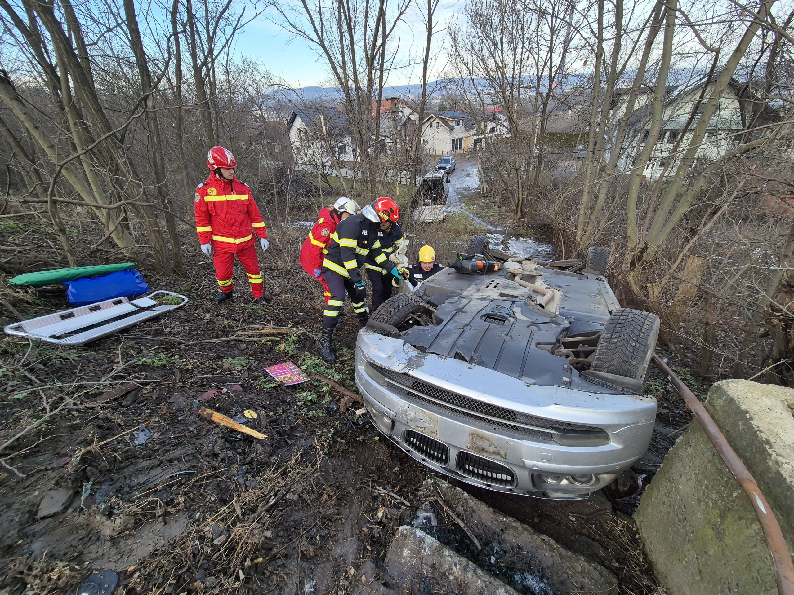 Un accident rutier grav s-a produs pe raza municipiului Suceava, în zona Grupului Școlar, unde un autoturism s-a răsturnat în