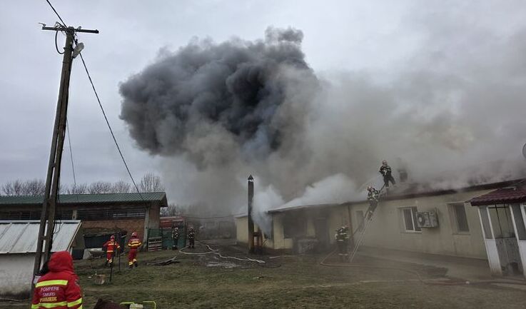 Un incendiu de proporții a izbucnit în cursul zilei de astăzi în satul Cotu Morii, comuna Popricani, la o construcție