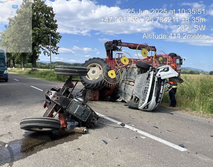 Un accident rutier grav a avut loc astăzi între localitățile Gălănești și Voitinel, județul Suceava, implicând un utilaj agricol și